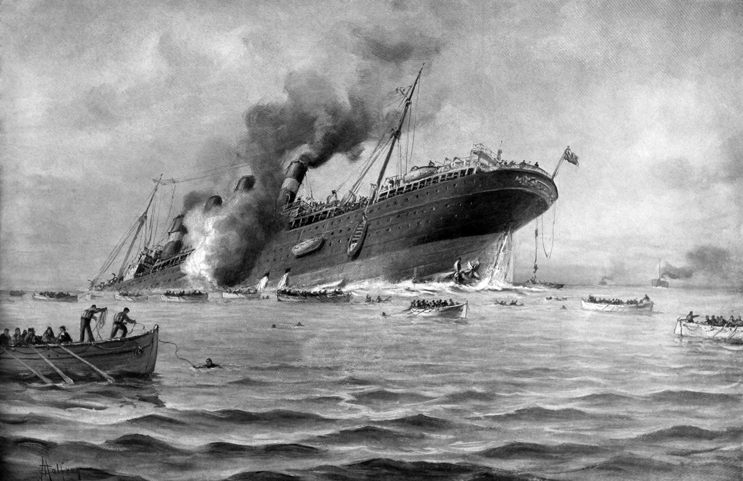 Der in den Bootsrumpf eindringende Torpedo wirkte auf Lærke wie eine Injektion mit Adrenalin. Sie zitterte am ganzen Leib, während sie sich das Nachthemd abstreifte und in Hose, Pullover und Stiefel schlüpfte. Kaum hatte sie den Südwester übergestreift, flog die Kabinentür auf, und Alexander stand vor ihr. Er hatte sein weißes Jackett gegen die Uniformjacke eines Offiziers getauscht. »Fertig ?« »Fast.« Sie stellte die Kombination ein und öffnete den Tresor. Die Mappe mit den Unterlagen und die kleine Schachtel mit den Proben lagen im obersten Fach. Sie verstaute alles in einem Rucksack und warf die Tür des Safes wieder zu. »Ich bin so weit.« Alexander winkte sie zu sich. »Etwas ist schiefgelaufen. Das Schiff krängt stark nach Steuerbord. Es scheint über den Bug zu sinken. Das war nicht geplant.« »Was meinen Sie? Was wird dann aus Thomas?« »Der wird es schaffen, das Schiff ist nach den neuesten Standards gebaut. Die haben aus dem Untergang der Titanic gelernt. Ihm wird nichts passieren.« Alexander packte sie unsanft am Oberarm. »Aua, Sie tun mir weh.« »Entschuldigen Sie, aber wir müssen jetzt los.« Die Zeit läuft uns davon.« Sie rannten die Backboard-Promenade entlang bis zum Treppenabgang der dritten Klasse. Lærke blickte sich immer wieder um, in der Hoffnung Thomas vielleicht doch noch zu sehen. »Oh mein Gott, Alexander. Schauen Sie. Die Wellen schwappen bereits über den Bug.« »Das kann doch nicht das Werk eines einzigen Torpedos sein.« Dann blieb er abrupt stehen. Ihnen quoll ein unablässiger Strom von Menschen entgegen, begleitet von den markerschütternden Schreien der Alten, Frauen und Kinder, die bei lebendigem Leib zu Tode getrampelt wurden. Hier war kein Durchkommen. »Hier lang.« Alexander ergriff ihre Hand, machte eine Kehrtwendung, und sie liefen, so schnell es ging, die Außentreppe zum D-Deck hinunter, zum E- und weiter zum F-Deck. Als sie die letzten Stufen springend überwanden, landeten sie in knöcheltiefem eisigem Wasser. »Mein Gott ist das kalt.« Es fühlte sich an, als würden tausend Nadeln durch das Leder ihrer Schuhe dringen. »Weiter! Wir müssen zum Heck.« Sie wateten gegen die Fließrichtung durch eine kalte Brühe aus Öl, Mobiliar und Trümmern, als sich ihnen ein erschütterndes Bild bot. Dort wo sich zuvor Kabinen befunden hatten, waren durch die Explosion der vorderen Kessel die Räume und mit ihnen ihre Bewohner einfach weggefegt worden. Wo vorher Menschen geschlafen und gelebt hatten, brodelte nun eindringendes Meerwasser wie in einem riesigen Kochtopf. »Wir müssen wieder hoch«, rief Alexander. Sie hasteten die Treppe hinauf. Obwohl Alexander heftig an ihrer Hand zerrte, verspürte sie keinen Schmerz. Der war der blanken Angst gewichen. Sie schafften es gerade zwei Etagen höher, als ein hysterisch schreiender Mann ihre Aufmerksamkeit erregte. Der Kerl versuchte, einer Frau und ihrem kleinen Jungen die Rettungswesten zu entreißen. Ohne zu zögern, schlug Alexander ihm mit der Handkante in den Nacken. Der Mann sackte zu Boden. Alexander bückte sich, half der Frau auf und gab dem völlig verschreckten Kind die Schwimmweste zurück. Lærke streichelte dem weinenden Jungen, der kaum älter als vier Jahre sein konnte, beruhigend über den Kopf. »Bring deine Mama in Sicherheit. Da lang!« Er schien sie nicht zu verstehen, und die Mutter, in völliger Panik, schnappte sich ihren Sohn und lief mit ihm in die entgegengesetzte Richtung. »Nein. Das ist falsch.« Lærke riss sich von Alexander los und rannte hinter den beiden her. Als sie um die Ecke bog, stoppte sie abrupt. Wo sie die zwei erwartet hatte, schoss eine breite Wasserwand durch den weiträumigen Treppenaufgang auf sie zu. Sie wurde herumgerissen. Alexander hatte sie eingeholt und zerrte sie nun noch unsanfter als zuvor hinter sich her. Sie gab jeden Widerstand auf. Jetzt ging es nur noch um das nackte Überleben. Sie dachte nicht einmal mehr an Thomas. Dafür würde sie die verheulten Augen des Jungen niemals in ihrem Leben vergessen. Wenige Minuten später erreichten die beiden das Heck der Lusitania. Bis auf einen Mann, der vor einer Kiste neben den Ankerwinden ein Schlauchboot auffaltete, war das Achterdeck menschenleer. Wer war das? Sie sah Alexander an, der ihr signalisierte weiterzugehen. Als sie wieder nach vorn blickte, wirbelte der Mann herum und zielte mit einem Revolver auf sie. Sie warf die Hände vor das Gesicht. Der Schuss wurde übertönt von dem lauten Zischen der Druckventile, aus denen der Dampf aus den Kesseln strömte. Hinter sich vernahm sie einen dumpfen Aufschlag. Als sie die Augen öffnete und sich umdrehte, sah sie, wie Alexander dem toten Körper eines jungen Matrosen unter die Achseln fasste und ihn zur Reling zerrte. Sie selbst war wie erstarrt, ihre Füße gehorchten ihr nicht mehr. »Alles in Ordnung, Madam? Ich bin Curt Thorn, ein Kamerad von Alexander. Ich werde Ihnen jetzt helfen, von Bord zu gelangen.« Sie verstand ihn kaum, so laut pochte das Blut in ihren Schläfen. Ihr Mund fühlte sich trocken an, und sie konnte ihm nicht antworten. Anstatt ihr die Hand zu reichen, wie es sich unter anderen Umständen geziemt hätte, zog er das Gummiboot zum Heck und befestigte ein Seil an der Backbordankerkette. Das andere Ende band er am Boot fest. Dann wuchtete er es über die Reling. Er winkte sie herbei und half ihr hinein. Sie ruderte wild mit den Armen bei dem Versuch, auf dem schaukelnden Untergrund Halt zu finden. »Hinlegen!«, herrschte Curt sie an. Alexander kam herbeigeeilt und stieg über die Querstreben der Reling. Curt lief zurück zur Winde und ließ sie an der Ankerkette hinab. Alexander startete den Außenborder und löste die Halteseile. Er sah hinauf und deutete einen militärischen Gruß an. Dann verschwanden sie in der sanften Dünung Richtung Osten.